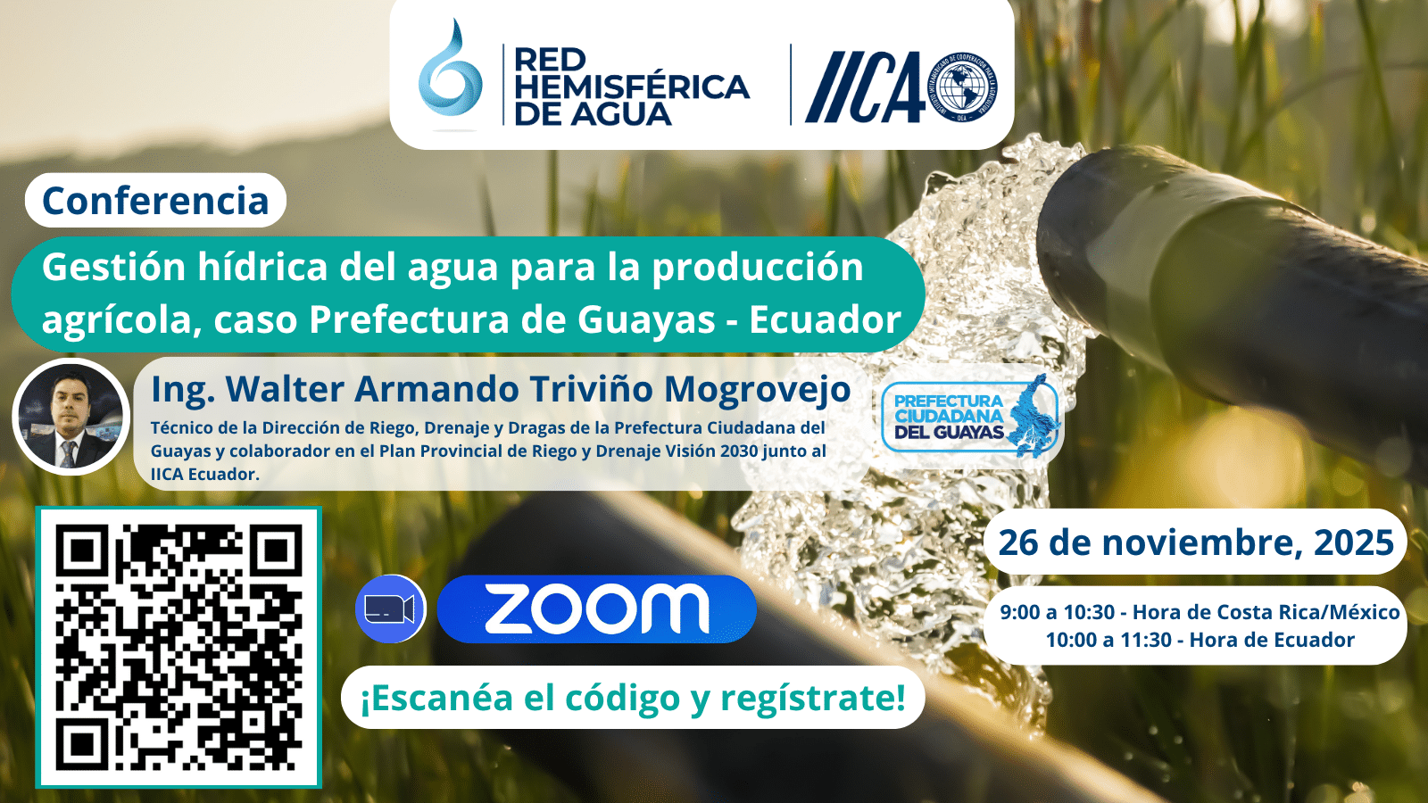 La gestión eficiente del agua es clave para asegurar la producción agrícola y el bienestar de las comunidades rurales. Por eso, te invitamos a conocer la labor del Ing. Walter Armando Triviño Mogrovejo, Dirección de Riego, Drenaje y Dragas de la Prefectura Ciudadana del Guayas, Colaborador del Plan Provincial de Riego y Drenaje Visión 2030 junto al IICA Ecuador.