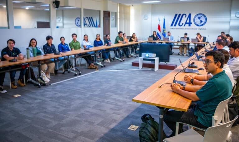 En el hackatón GeoRiego 2025, realizado en la sede central del IICA en San José, Costa Rica, participaron más de 19 equipos que presentaron soluciones tecnológicas para la gestión del agua en la agricultura.