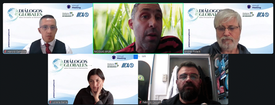 El primer ciclo de intercambio contó con la participación de Harold Gamboa, especialista del programa de Innovación y Bioeconomía del IICA, y secretario ejecutivo de la Plataforma Hemisférica de Bionsumos (PHB); Nicolás Ayub, investigador de Prix Biotech; Andrés Polack, investigador del Instituto Nacional de Tecnología Agropecuaria (INTA) de Argentina; Lorena Barra, investigadora y asesora especialista en el desarrollo de bioinsumos de MacBio; y Fabricio Cassan, investigador del Consejo Nacional de Investigaciones Científicas y Técnicas de Argentina (CONICET).