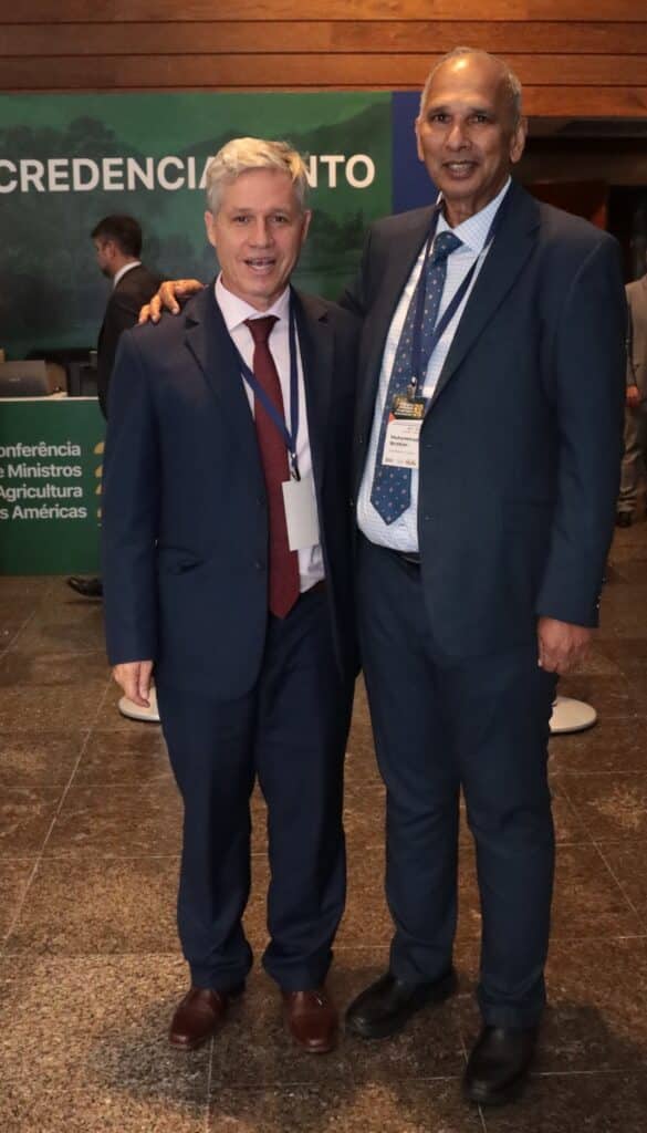 Teixeira felicitó a Muhammad Ibrahim, de Guyana, electo en Brasilia como Director General del Instituto Interamericano de Cooperación para la Agricultura (IICA) para el período 2026-2030, y ponderó la tarea de Manuel Otero, que finalizará su mandato al frente del organismo en enero próximo.